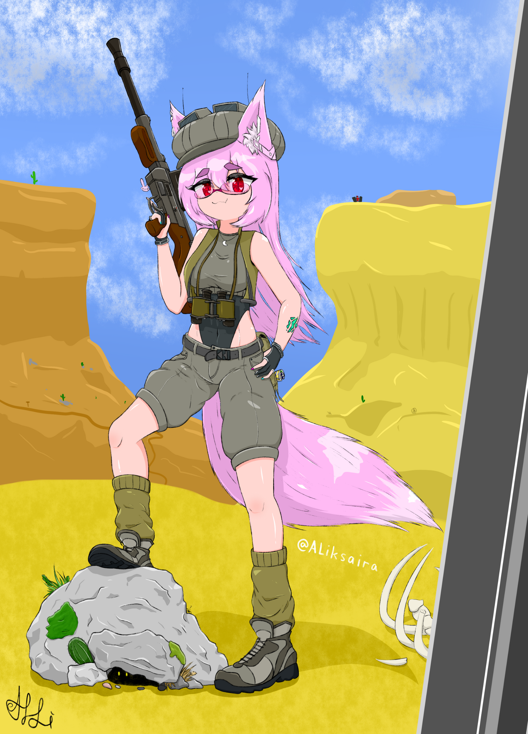 With a contract for 4 years, going through basic training and slowly adjusting to military culture. She showed her decent capabilities as a soldier and excellent medical proficiency. She was signed under the 3rd Mechanized Infantry Regiment, within that to the 6th Mechanized Infantry Platoon, 1st section as a combat medic. There she slowly developed very good relation with her section members. Soon, this bond was tested in fire and blood. When the Luna Federation decided to send expeditionary forces to her ally, the Empire of Honovere, against the Monjärviä League. Her regiment was included in the forces sent. She did not like the idea, but the payment bonus overruled. Leaving behind Pipiko they arrived in a frozen mountainous land with a very harsh weather. And an enemy desperate to defend it's home. Known to not taking prisoners. They endured together, their bond getting stronger through hardship. Here due to the enemy using distopium offensively, she contracted the infection, and later turned out to be an Armtagio in evolving.