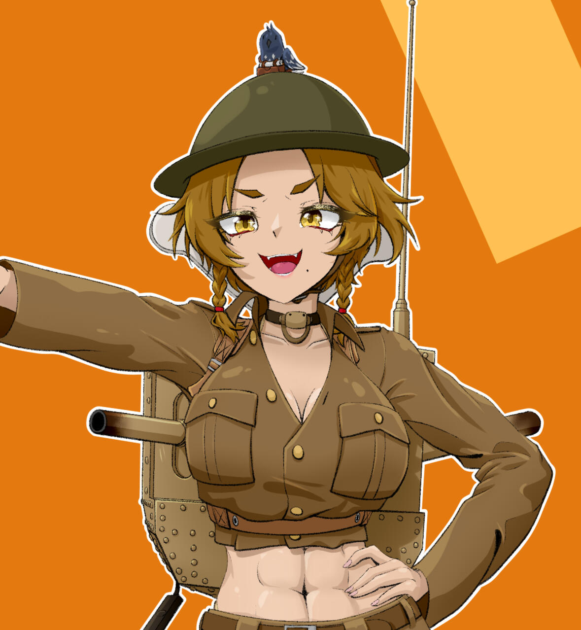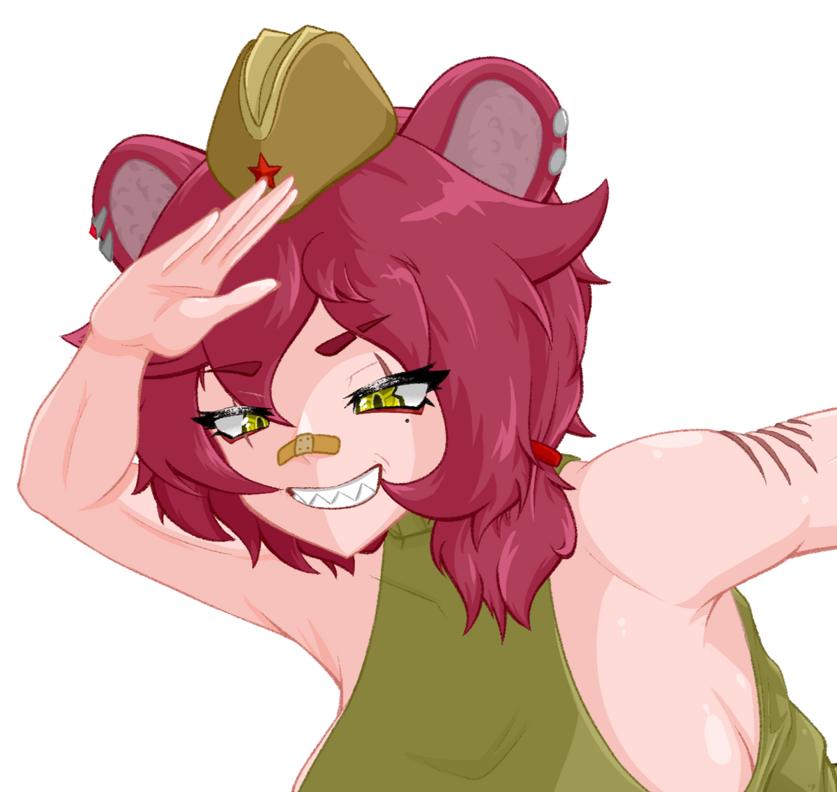 With a contract for 4 years, going through basic training and slowly adjusting to military culture. She showed her decent capabilities as a soldier and excellent medical proficiency. She was signed under the 3rd Mechanized Infantry Regiment, within that to the 6th Mechanized Infantry Platoon, 1st section as a combat medic. There she slowly developed very good relation with her section members. Soon, this bond was tested in fire and blood. When the Luna Federation decided to send expeditionary forces to her ally, the Empire of Honovere, against the Monjärviä League. Her regiment was included in the forces sent. She did not like the idea, but the payment bonus overruled. Leaving behind Pipiko they arrived in a frozen mountainous land with a very harsh weather. And an enemy desperate to defend it's home. Known to not taking prisoners. They endured together, their bond getting stronger through hardship. Here due to the enemy using distopium offensively, she contracted the infection, and later turned out to be an Armtagio in evolving.