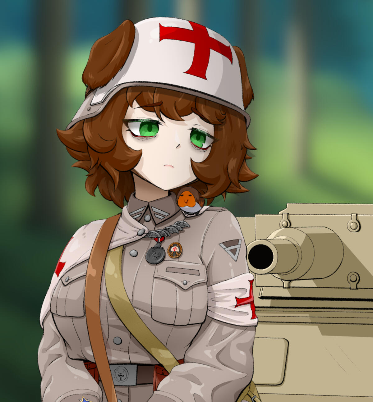 In the last month of the conflict, during a large scale night raid by the League, their position was heavily assaulted and soon surrounded. Leaving behind their immobilized vehicle and forced into a bunker they fought like lions. Marien patching up everyone as much as she can in that environment and with supplies running out. Given their stubbornness to yield to the enemy, their position came under heavy artillery bombardment. Destroying their fortification in mere seconds. Trying to escape the collapsing bunker she was pushed from behind just enough to make it out into the trenches. Looking behind at the now collapsed bunker, an arm sticking out under the rouble. She was immediately grabbed by her fellow and pulled back into reality. They fought their way through the trenches towards allied forces. With the enemy being all around them. Despite inflicting heavy casualties at their enemy. The closer they got the more they lost. Each one of them sacrificed their life to give their comrades an inch more chance to get back. All encouraging her to just go forward. Losing one after the other. As the gun shots and yells slowly faded behind her she stumbled and fell onto the frozen soil. Injuring her left leg. Rolling over to her back she looked back at the battlefield. No one was behind her. Her racing thoughts were interrupted by the raging of tracks. Already shaken to the core she contracted herself into foetus position. She thought of everyone, her family, her parents, her comrades. A voice called out to her. Surprisingly, it was a familiar. Their platoon commander stood above her in the machinegun ring of his vehicle.
