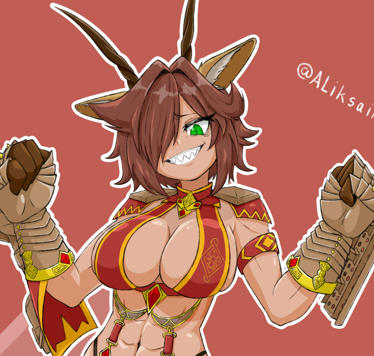 She would have chosen the path of a soldier, but due to her laziness for everything that is not about guns and Artemiy advising against it she did not so.She contracted severe distopium infection in a leakage incident to a nearby powerplant, right after she came of age. Artemiy moved every connection of his to get Asha into the best hospital for the infected to stabilize her dire state. When she arrived a large chunk of her right arm was already covered in large crystal clusters. They wanted to remove the arm to prevent further crystallization, but due to heated back and forth about this a few days have passed and Asha's vitals haven't got critical and by some miracle the clusters receded. This allowed the opportunity to the doctors to remove the external formations. This eliminated the risk of rapid crystallization. And with a year rehabilitation her infection slowly stabilized to the average levels of an infected. During her stay she turned out to be an Armtagio as well.